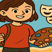 Art, painting, theatre (backstage), circus aerial arts, hiking, visiting museums, building LEGO sets, Greek mythology, music, board games, cinema, shopping, vintage car events, spending time outdoors, swimming at the beach.